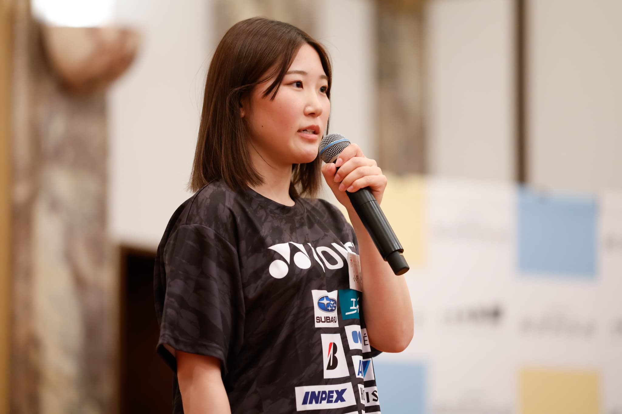 体験談の終了後には、登壇した就職希望アスリートによる座談会を実施。服部JOC理事と柴JOCキャリアアカデミー事業ディレクターの質問に答える形で、自らの考えを述べました。説明会終了後には、選手と企業関係者との名刺交換、情報交換会が行われ、企業と選手がそれぞれ交流を深めました。