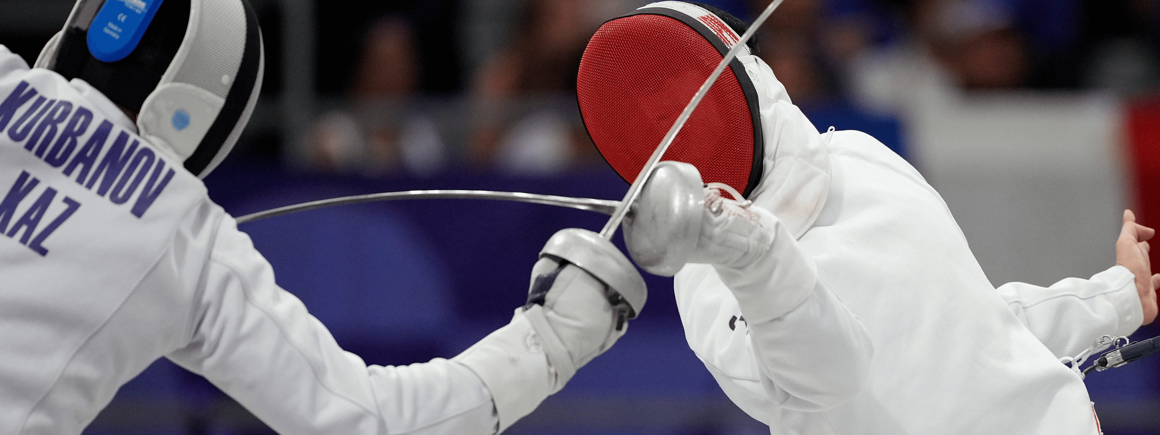 剣を使用して相手の胴体を攻撃します。競技の見どころは優先権の奪い合いで、「攻撃→防御→反撃→再反撃」といった迅速なバトルや技のやり取りが楽しめます。優先権とは、両選手が同時に有効面を突いた場合、先に攻撃を仕掛けた方が優先されるルールです。攻撃を受けた側はまず防御し、防御に成功すると優先権が防御側に移ります。