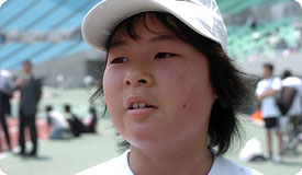 マラソンをやっている僕にとっては長居競技場はあこがれの場所。ここで浅井えり子さんら憧れの選手と一緒に走れて、とてもいい思い出になりました。(祥貴さん)