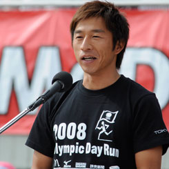 「2008オリンピックフェスティバル参加のみなさん、おはようございます!昨年のオリンピックフェスティバルはあいにくの雨でしたが、今日はとても良い天気に恵まれました。これも今日参加してくださいました、みなさまの思いが天に届いたのだと思います。本日はどうぞ、宜しくお願いいたします!」と元気に挨拶すると、会場に集まった大勢の参加者から拍手が起こりました。