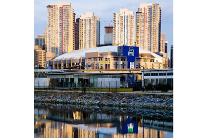 バンクーバーに位置する「Canada Hockey Place(カナダ・ホッケー・プレイス)」。1995年のオープン以来、毎年100以上のイベントが開催されているこの会場では、アイスホッケーが行われる。収容人数は19,300人。 (© VANOC/COVAN)