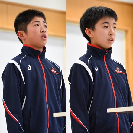 「僕はエリートアカデミーに入り、人間力の向上、そして競技力の向上を目標に頑張っていきたいです。生活面では決められたルールをしっかり守って行動し、練習では常に意識を高く持ち、集中して取り組み、最終的にはオリンピックでメダルをとれるような選手になりたいです。これから応援よろしくお願いします」