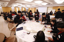 また、結団式終了後、選手たちは日本代表選手団として必要な知識習得及び自覚醸成、また、チームジャパンとしての一体感を育み、さらにユースオリンピックの理念を理解し、現地で文化・教育プログラムへの積極的な参加を促すことを目的とした研修会「Building up Team Japan for Lausanne 2020」に参加。本研修会での各種プログラムに先立ち、最初に伊東団長が「ユースオリンピックは様々な教育プログラムが組み込まれた大会でもあります。皆さんが他の競技の選手たちや、現地の人たちと友好親善を深めて、皆さんのこれからの競技生活に役立てていただきたいと思います」と挨拶しました。