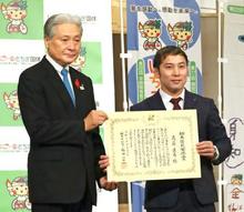 東京五輪の柔道男子60キロ級で金メダルを獲得した高藤直寿選手(28)に栃木県が16日、県民栄誉賞を贈った。下野市出身で、今大会で日本勢初となる金メダルに輝き、日本の躍進に弾みをつけた。
