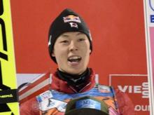 小林陵侑の話 2本ともいいジャンプをそろえられたのですごくうれしい。この金メダルという結果をすごくうれしく思って、次からも頑張っていきたい。(共同)
