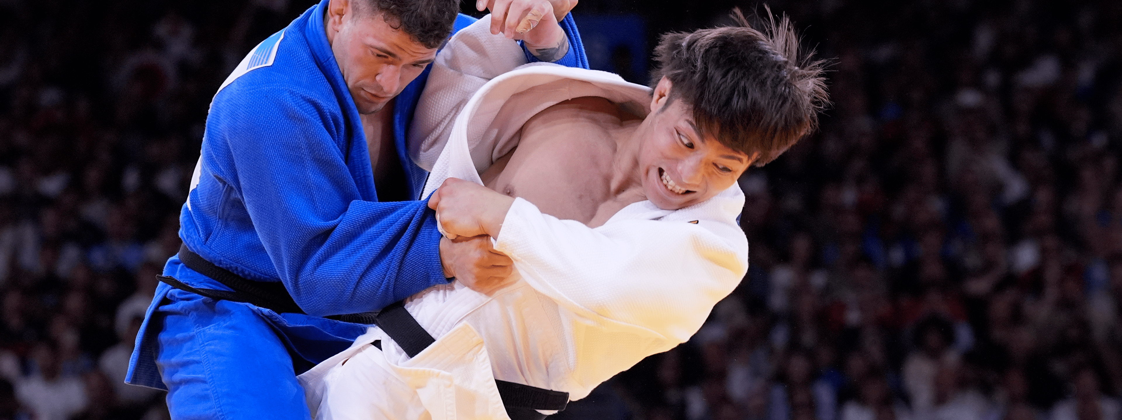 柔道は、白か青の柔道衣をまとった選手が、10m四方の畳上で戦います。瞬時に展開される技の応酬により、ポイントで負けていても試合終了直前に大逆転が生まれることがあるため、試合終了まで目が離せません。