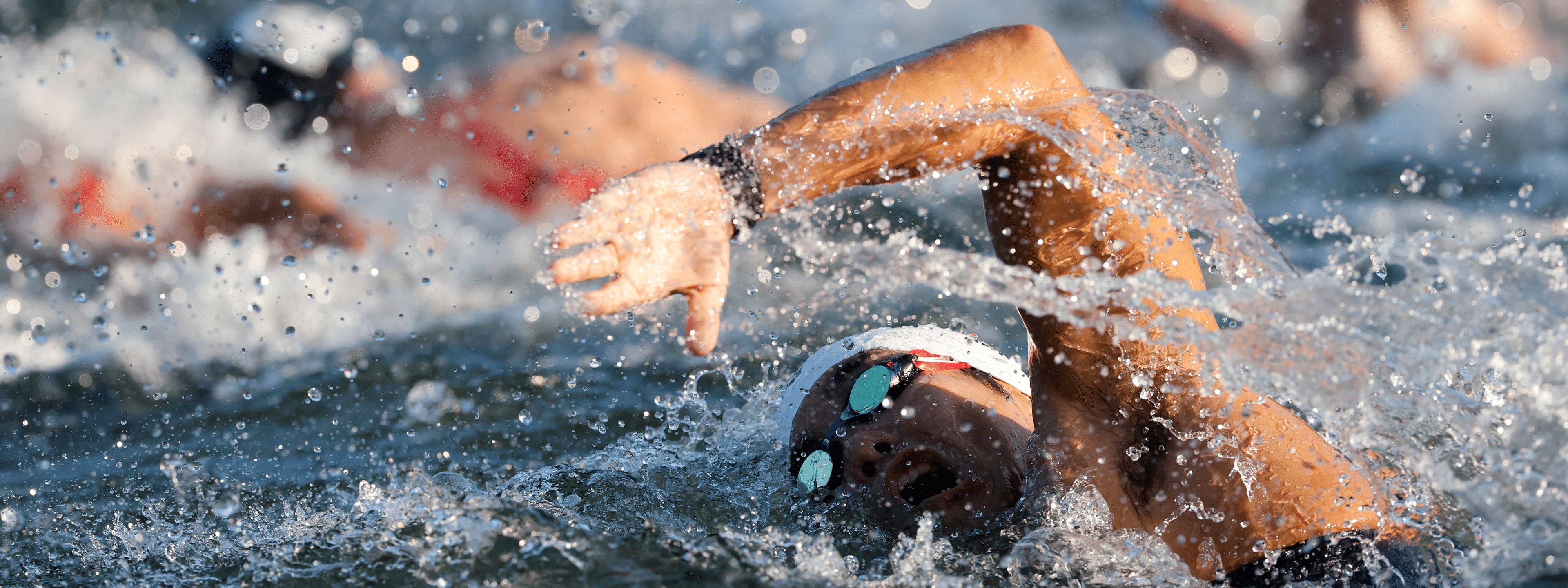 10kmにわたる耐久レースにおいて、最も印象的な瞬間は、各選手が7km地点付近から始まるスパートの勝負です。しかし、実はその瞬間に至るまでの間に、自分の体力を無駄に消耗せず、最後のスパートに備えるためにどれだけ力を残せるかが、勝敗を分ける大きな要素となります。途中のスピードの変動による揺さぶりに対処できる力、それに伴う集団内での適切な位置取り、そして海や川の流れがある状況下で、どれだけ効率的なコース選択ができるかも、この競技で成功するための重要なスキルと言えます。特にコース選択は環境に大きく左右され、海の場合、潮の流れや波の大きさが時間とともに変わるため、これらを正確に判断する必要があります。近年では、競泳の長距離種目に出場する選手たちもマラソンスイミングに参戦。スピード化が進んでおり、前半からハイスピードで逃げ切るレースも見られるようになってきました。その影響もあり、特に最終ラップでの争いが激化し、タッチ差で勝負が決まるレースも多くなってきました。体力と知恵、環境の読み取り、そして10kmのレースでも屈しない精神力。まさに、心技体が備わった選手たちが世界一をかけて競い合うのが、このマラソンスイミングという競技なのです。